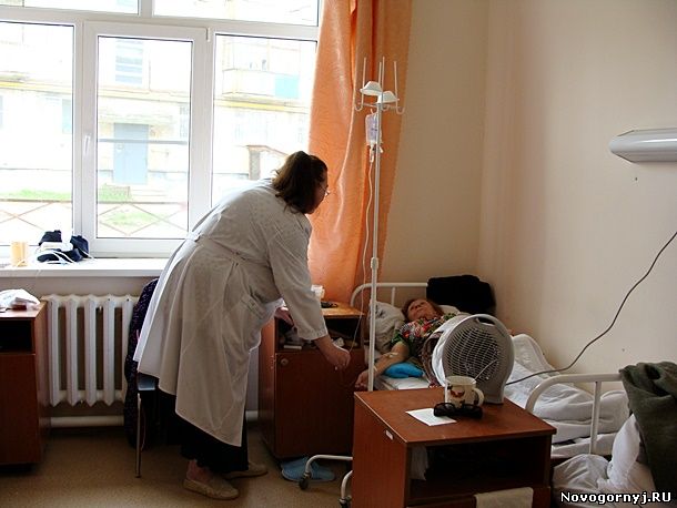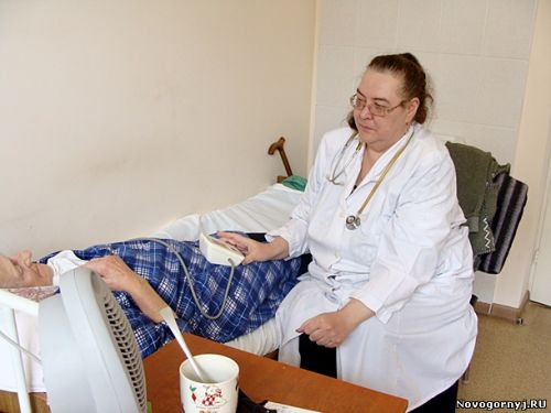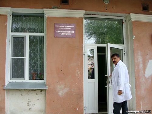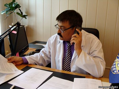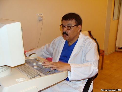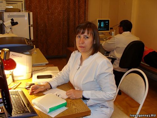Правда, заголовок не совсем правомерен, так как посёлок Новогорный не подпадает под программу с названием - "Земский доктор". Отсюда и некоторые трудности с устройством на работу молодых специалистов. Но об этом чуть позже. А вот главный врач больницы, подобно земскому доктору, един в нескольких лицах. Начало Главврач Усман Халилович Курбанов родом из Таджикистана. По национальности узбек. В 1987 году окончил медицинский институт в Душанбе. Шесть лет работал в центре сердечно-сосудистой и торакальной хирургии там же, в столице. Но по политическим причинам, усложнившим жизнь, как русским, так и другим лицам не таджикской национальности, вынужден был сменить место жительства. И в 1993 он уже работал хирургом в центральной районной больнице Брединского района Челябинской области. Тогда, в практике ещё довольно молодого врача, был трудный случай: ему пришлось оперировать женщину, которой муж нанёс восемь ножевых ранений. Ранения были в шею, в область грудной клетки, в живот… Была и проникающая рана в сердце. Тем не менее, операция прошла успешно, пациентка осталась жива. Новогорный В 2007 году Усман Халилович уже работал в Новогорном. Причина переезда – желание быть ближе к сыновьям. Они в то время учились в Челябинске. Спустя два года, когда новогорненская больница вошла в состав ЦМСЧ №71, Усман Халилович был назначен её главным врачом. Из справки: поликлинике Новогорного в следующем году исполнится 70 лет. В день здесь обычно бывает до 150 пациентов. А проживает в посёлке на сегодня 6926 человек. Из них 1226 детей младшего и среднего возраста и 186 подросткового. В круговороте дел У главного врача масса обязанностей. Если заглянуть в должностную инструкцию, то остаётся только удивляться, как ему хватает времени и сил, чтобы вести ещё и приём больных. Кроме того, что он обязан знать массу нормативно-правовых документов, регламентирующих деятельность медицинских учреждений, на нескольких страницах ещё идёт перечисление обязанностей. Среди этих обязанностей есть и такие, о которых не знали врачи 20 лет назад: «… эффективно использовать в работе персональный компьютер и оргтехнику, осуществлять ведение медицинской документации на электронном носителе». Впрочем, бумажные «носители» тоже никто не отменял. Мы, пациенты, по себе знаем, что врачу иногда голову некогда поднять, когда он заполняет наши истории болезней на тех или иных носителях. А как складывается обычный день главврач? В день визита корреспондента Усман Халилович после суточного дежурства (с 8 утра 12 июня до 8 утра 13 июня) сразу приступил к обычной работе. В 8 утра провёл «пятиминутку» с врачами (она обычно идёт полчаса), а с 8.30 до 10 был на приёме в хирургическом кабинете, замещая коллегу, ушедшего в отпуск. С 10 до 10.30 обследовал пациентку на аппарате УЗИ. Старшая медицинская сестра Юлия Демура Затем ему пришлось отвлечься от привычных дел и показать корреспонденту свои владения. На это ушло более часа. В обычные дни после кабинета УЗИ продолжается приём больных в качестве хирурга. А после обеденного перерыва идут административные дела. Поликлиника Сначала мы прошлись по поликлинике. Конечно, ремонт бы тут не помешал. Но, не красна изба углами… Главное то, что все люди, пришедшие на приём, обязательно будут приняты. Даже по окончанию рабочей смены каждого врача. В поликлинике работают два фе